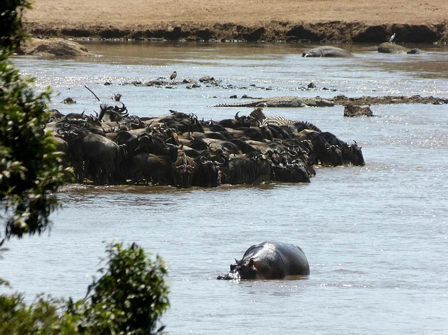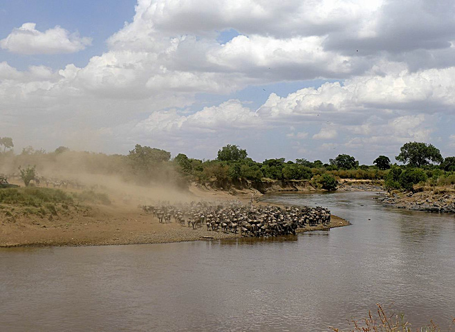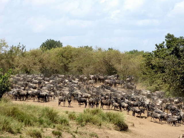 大批的角马已经聚集的渡口附近