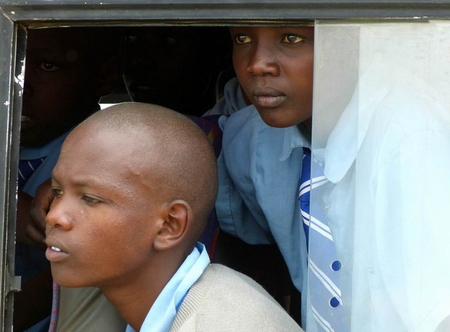 目不转睛观看角马渡河的肯尼亚学生。