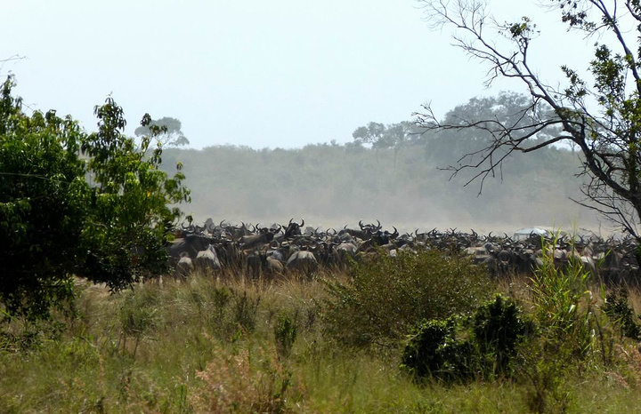 下午2时许,角马和斑马又开始向渡口移动,成千上万的角马、斑马涌向马拉河边。