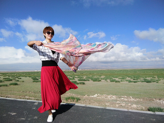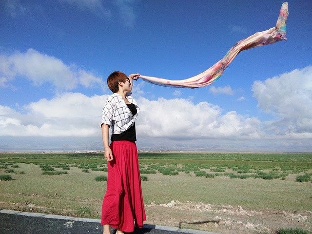 一喝酒就睡不好觉,早上起来没吃早点,到茶卡盐湖的路上坐车里一阵恶心,一直都没说话,大姐看到风景美得地方就让我们下车照相,一听要照相,立刻精神了!