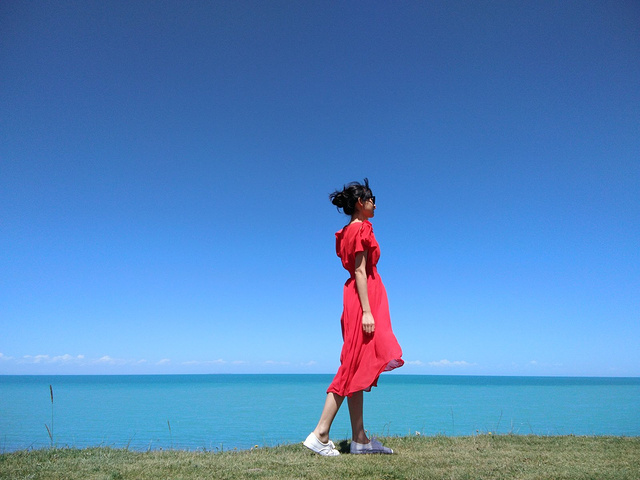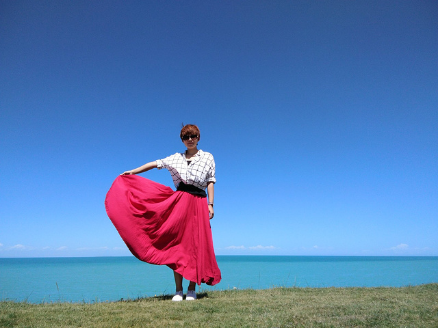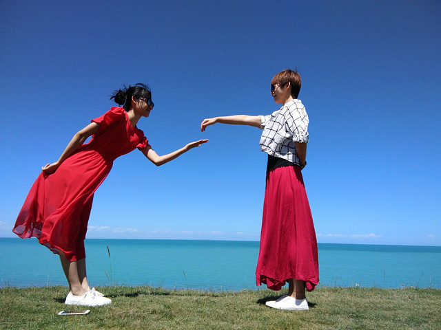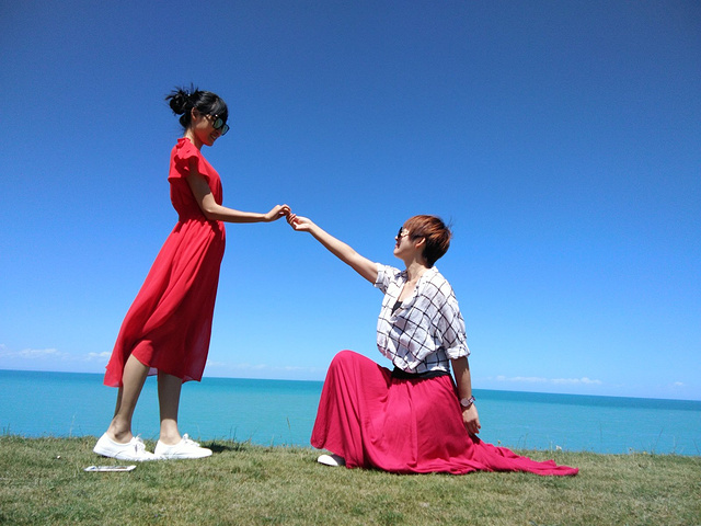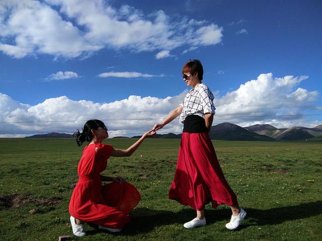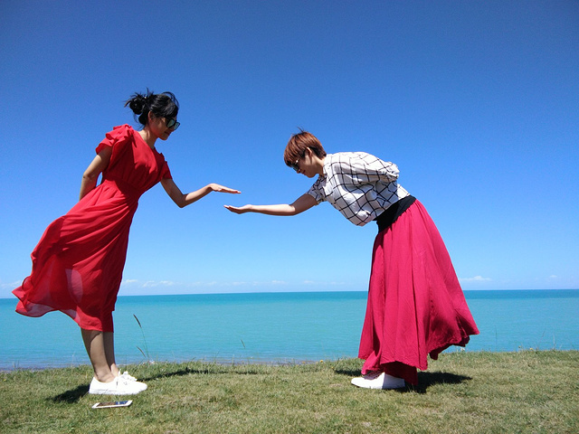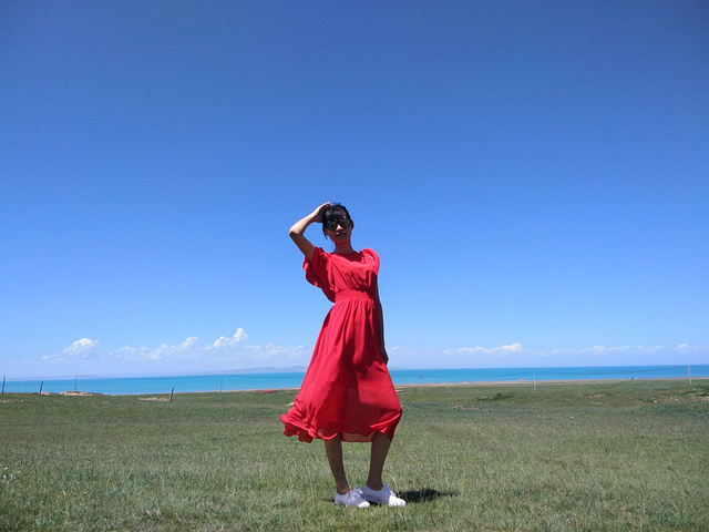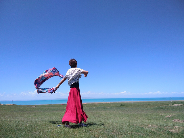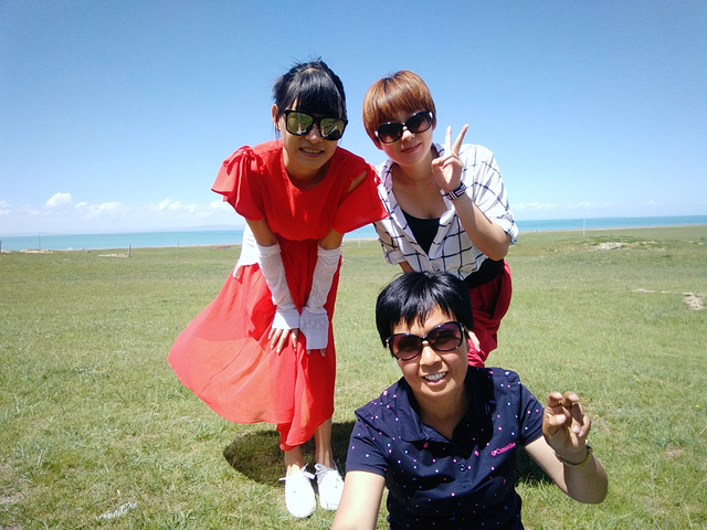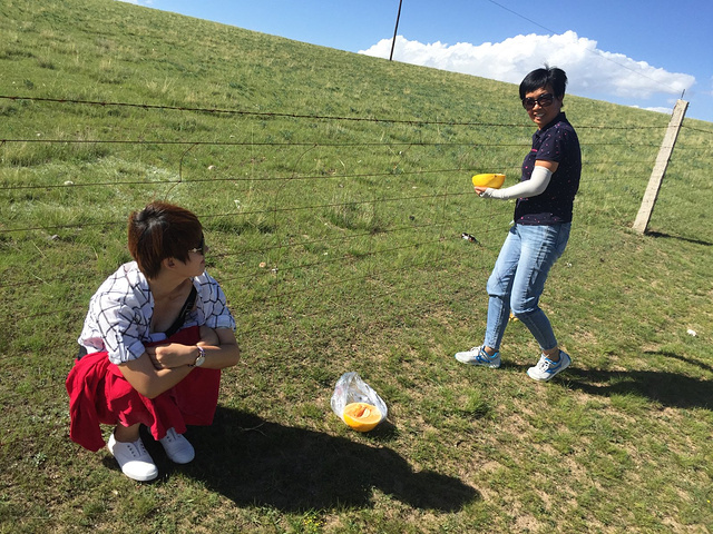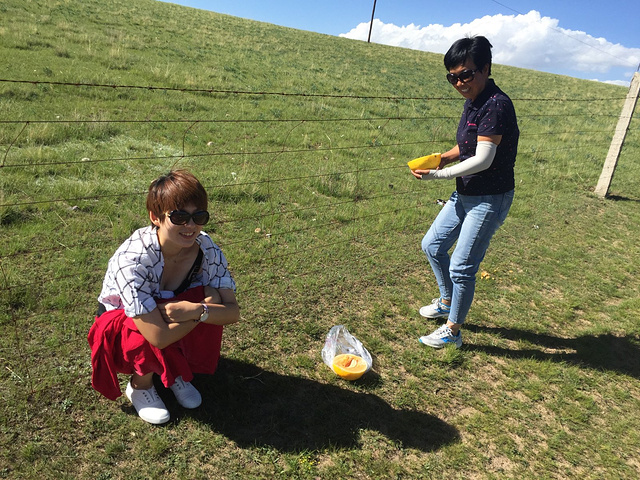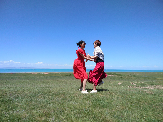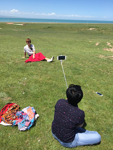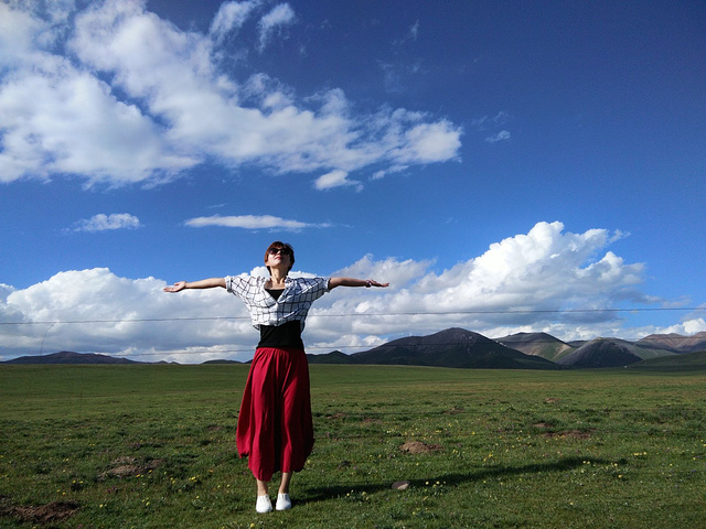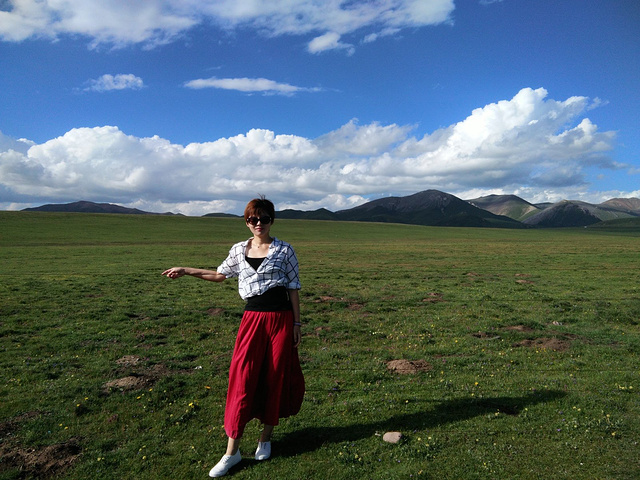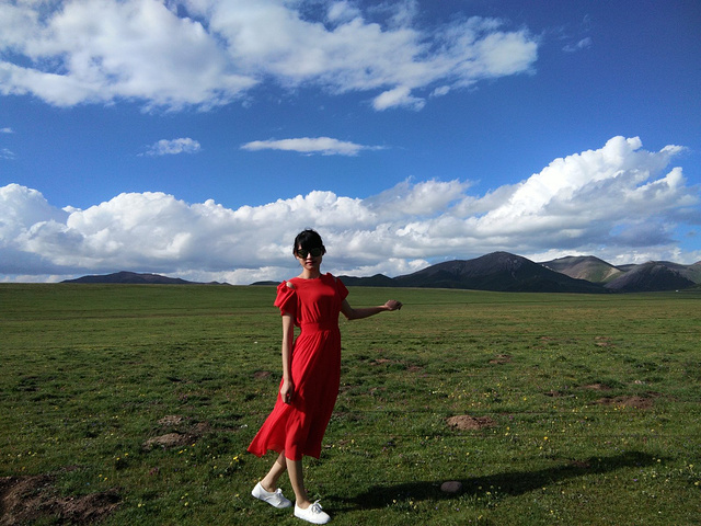 从茶卡盐湖出来已经中午了,大姐就一直在等着我们,之后很长一段时间都是盘山路,景色很壮阔,天空很蓝,白云,草原和山都是一片一片的,开车的时候大姐说,路上撞死一只羊就是一万,一头牛三万!千万小心!天气晴朗风景太美,大姐看到好看的景色就叫我们下车照相,还给我们买甜瓜吃!真的是我吃过最好吃的甜瓜,超级甜!
