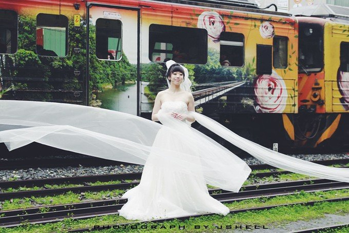 我们的运气真的超级棒,在台北虽然木有大晴天,但也木有怎么下雨,在垦丁那几天的天气真是好到爆!来花莲本来还担心下雨结果也是大晴天,今天要离开花莲去九份了,花莲就下起了雨。一大早出发去火车站找不到出租车,就打电话预约啦,预约车还有优惠的哦!司机叔叔人也超好,把我们送到车站还帮我们拿行李,回来到厦门一下子就感受到了差距,司机收下钱就管自己开车走了…在花莲坐了两个小时的车就到了瑞芳,热门民宿老板娘的服装店就在车站附近,我们在那里寄存了下行李就出发平溪线一日游啦,民宿的老板和老板娘很热情很好哈,他们的儿子也还蛮像关谷神奇的!平溪线直接刷悠游卡就行,特别复古的小火车,不过人也特别多,还要平溪线的火车基本上是1小时一班,所以大家游玩的时候要注意时刻表,我们是先从瑞芳坐到终点站菁桐,这样来回都有位子坐,到了菁桐吃了当地有名的矿工饭店,味道还不错,这里吃饭都需要大家自己回收餐具的。之后就一阵瞎逛,无意间又碰到有人拍婚纱照,真是赞爆了,又是一顿蹭拍,临走的时候发现他们在拍婚纱的火车延时,顿时就超级羡慕啊啊啊!我也想拍,可是火车要开走了…