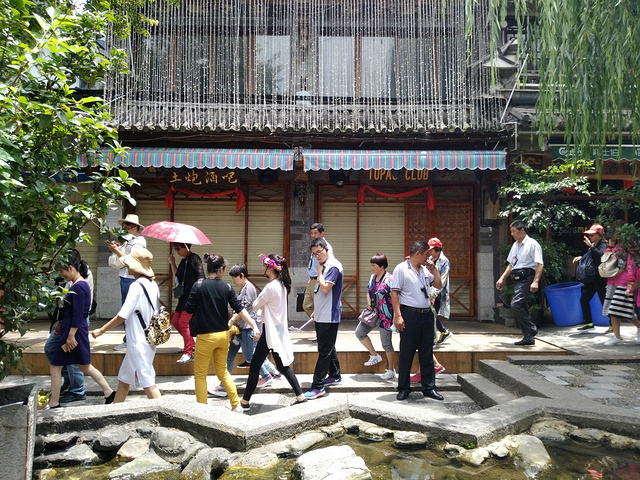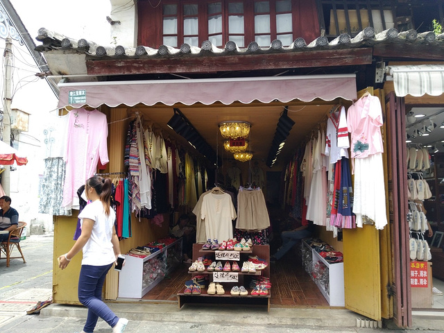 真正的游玩从第二天开始,在古城不用起太早,太早店铺没开门,什么都没有,就是一条空落落的街。我们的客栈是提供早餐的,吃饱喝足后,十点慢慢悠悠的出门,现在古城会更热闹些。一路走,一路都是小吃,特产,民族服装,小饰品。粑粑麻麻对这些东西可没兴趣,但是宝贝米感觉很新鲜呀,因为这些东西都是她以前没见过的。