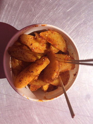 这天刚好是挖色的街天,街天就是有些村子里以农历计算的一周一次的赶集会。很热闹,这里上了年纪的白族阿婆都喜欢穿自己民族的服装,都是她们自己做的。忍着洁癖吃了一回路边摊,以前我是一百个拒绝的,但是既来之,哪能不尝尝,抓抓粉很好吃,和老公一人吃了两碗,宝贝米吃了一点点,因为有点酸,吃不惯。买了一碗炸洋芋,脆脆的很好吃。