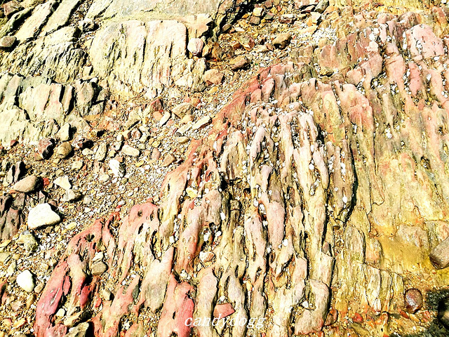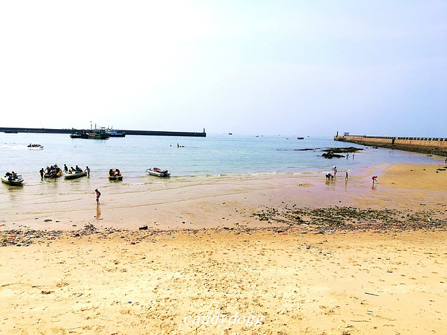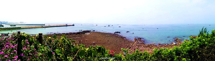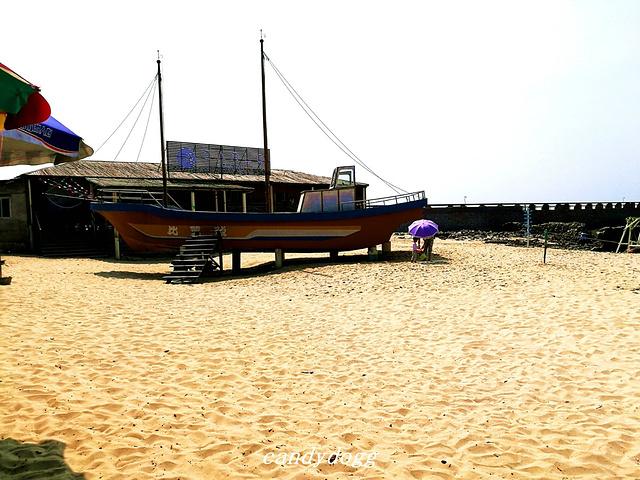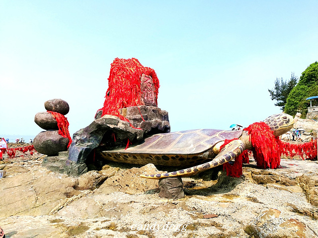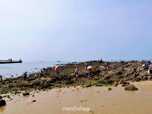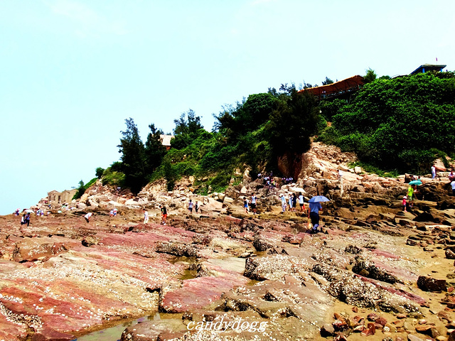 个人特别推荐去的是冠头岭海滩,这里是北海唯一有海拔、有礁石的地方,整个冠头岭看起来像一条青龙,当地人说是龙脉,所以推荐我一定要去看看沾沾龙脉的福气。这里有一大片海蚀平台和礁石,还有一只石头做的大乌龟,上面顶着大石写着“海枯石烂”,好多恋人在这里系上红丝带祈福自己和爱人的感情可以海枯石烂。最棒的是这里有一大片的海蚀平台,错落的礁石之间,有好多螃蟹、小型的贝壳和生蚝,小小的积水坑里甚至会有成群结队的小鱼,可以买铲子和小桶来这里一展身手,看看谁抓的螃蟹和找到的生蚝最多,呵呵。
