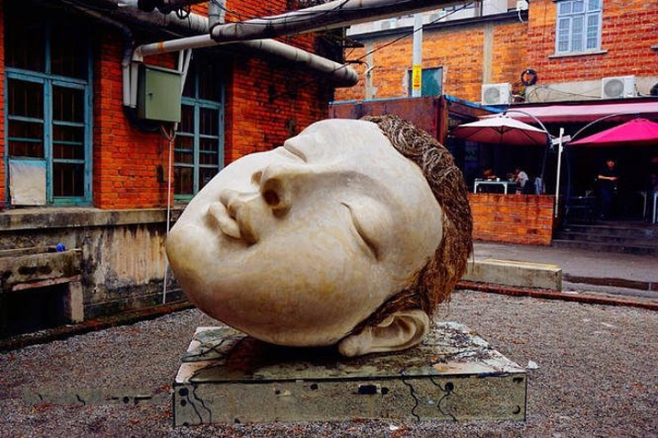 红砖代表的是一种古老,然而这个扭曲的摆设显示的却是现代艺术的一种表现手法,两者同屏却没有违和感,这似乎是在告诉我们,古朴和现代是可以相互借鉴协调的。这个保留下来的标语——产品的生命在于质量,是一句多么让人怜惜的话语,生活在这个假货横流,次品泛滥的年代,看到这么一句话,难免让人既惋惜又羡慕。无处不在的点缀,充满着历史的斑驳感,配以新潮的涂鸦艺术,一路上,还能看到许多淘宝的拍摄,足以证明这里是一个充满美和灵感的地方,而且这边定期还会有艺术展览和摆摊活动,真是一个好地方!!