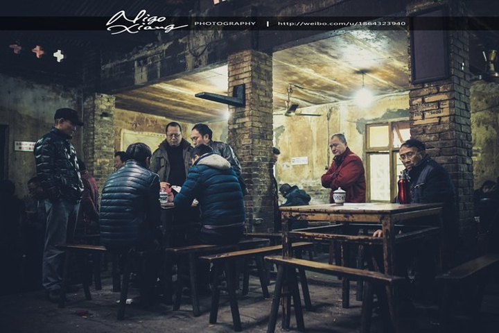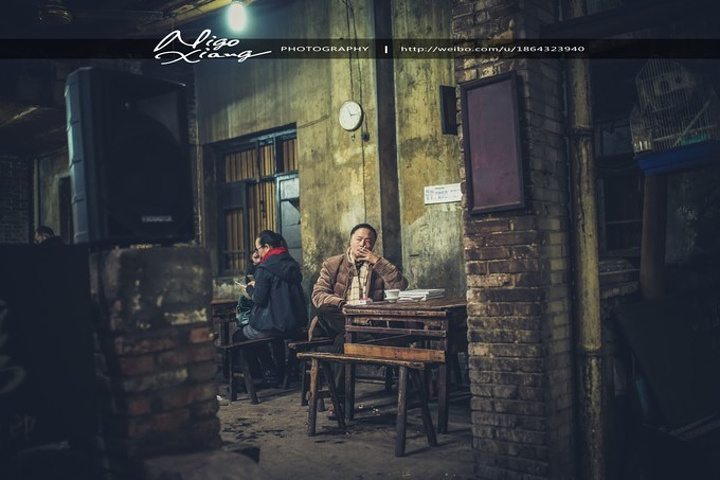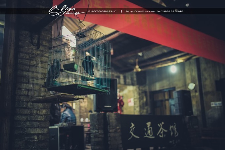 这里的很多茶客一坐就是一天,老茶客们已熟识多年,他们慢慢的地品着茶,悠闲地摆着龙门阵,三五人一桌聚着下棋、打牌、听戏,这里像是被时光遗忘的地方。正如有位茶客所说,交通茶馆没有拘谨的感觉,这里就是生活。