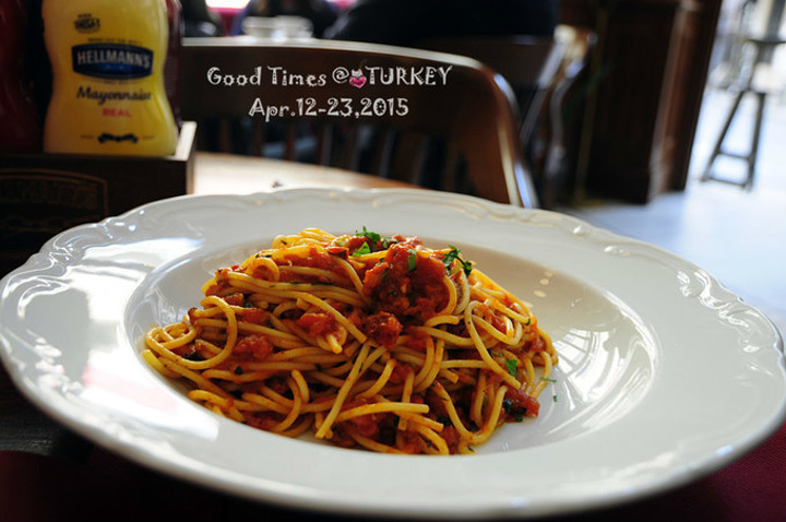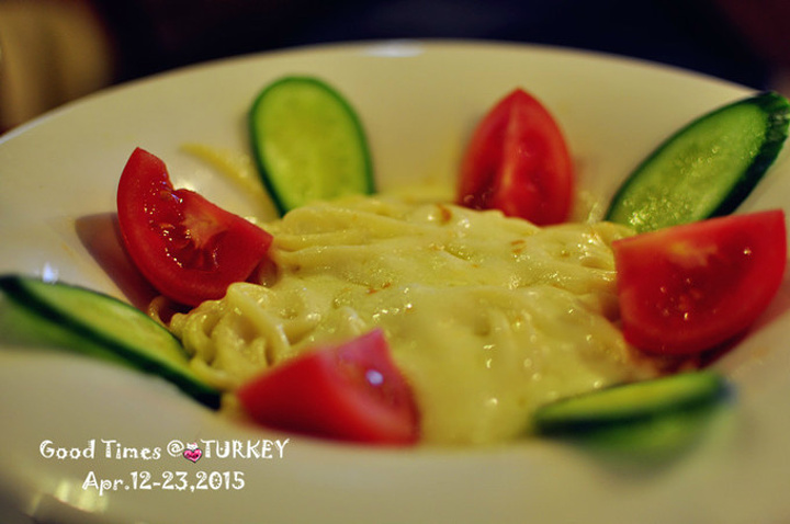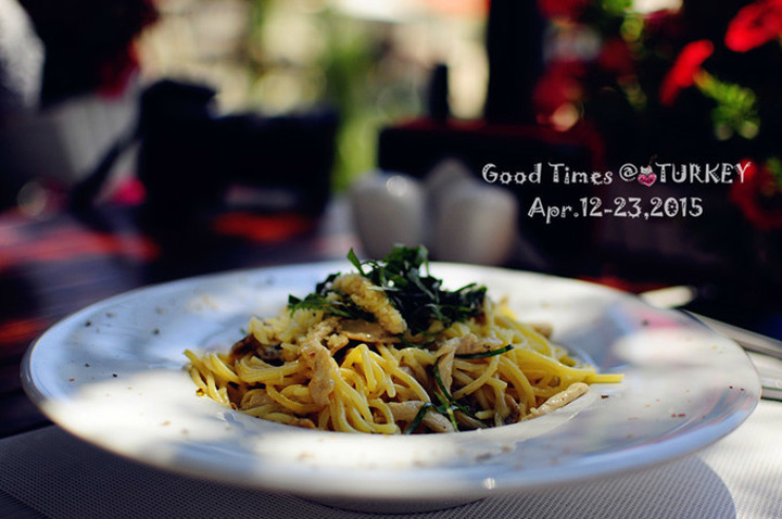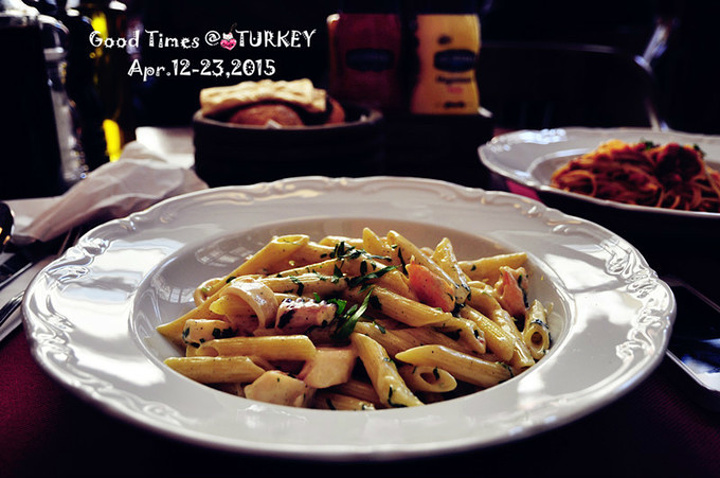 土耳其是伊斯兰教国家,虽然它同时又非常尊重别的教派共存,但是97%的土耳其人仍是信仰伊斯兰教,所以可想而知猪肉在这个国家很难吃到,不过这并不影响土耳其菜成为世界三大菜系之一,在去土耳其之前,我是比较担心自己会吃不惯,毕竟土耳其烤肉我一直都不喜欢,而曾经在欧洲的经历也让我对这三大菜系之一的土耳其菜不抱任何希望,可是,可是这次我错了,在土耳其每天我都能吃到可口的饭菜,这里的意大利面比我在意大利吃的还要好吃,这里的肉、蔬菜都能品出原汁原味的自然风味,而且感觉健康又美味,完全都吃不厌,特别是格雷梅,不知是不是因为中国人去的多,所以有点按我们的口味改良了,总之符合我的味蕾,不过也有同学说吃腻的,所以以上言论仅代表我一家之言。