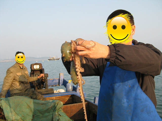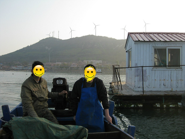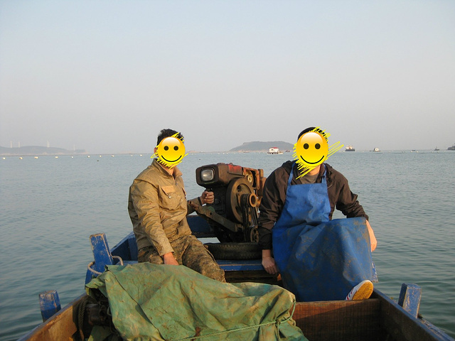 第二天一早,4点半起床,5点和老板出海,我们坐着小船,驶向海景房。出海要提前和老板商量好。