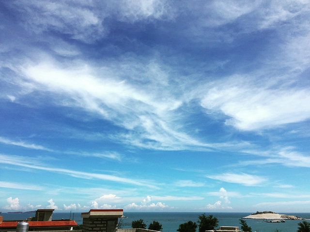 在民宿的屋顶拍的蓝天白云超美。