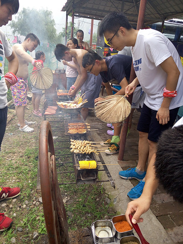 烧烤,先是漏天烧烤。后来竟然下了一场大雨,还带着大的冰雹。赶紧跑到房屋下继续烧烤,玩游戏,还认识了几个好朋友。