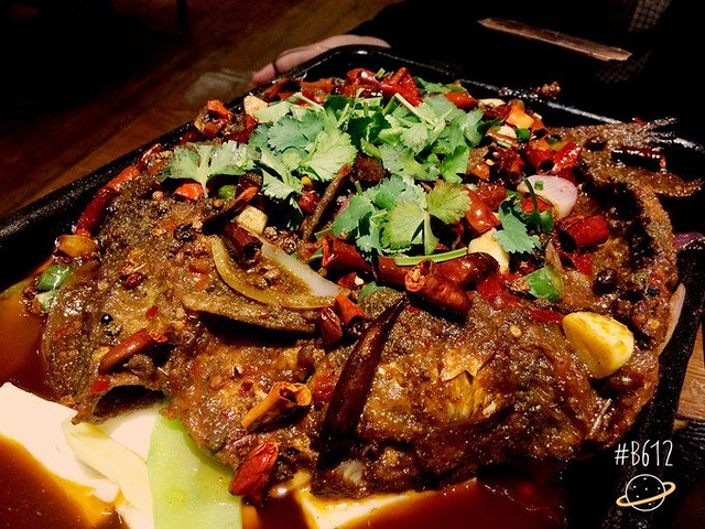 烤鱼和我理解的有点不一样,我以为烤鱼是炸过之后再煮,吃不出鱼的鲜味。成都的烤鱼只有表面一层是炸过的,里面的鱼肉还是嫩嫩的,而且刚开始的时候不会入味所以不辣,鱼的品种也不是常吃的那几种鱼,总的来说挺喜欢的w