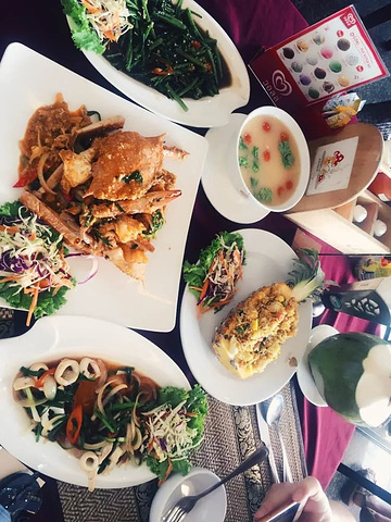 泰式蟹,菠萝饭,鲜鱿外加一个冬阴功汤、通菜和椰子