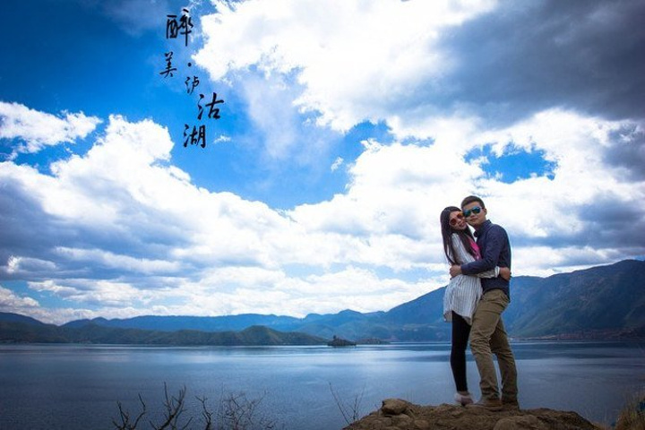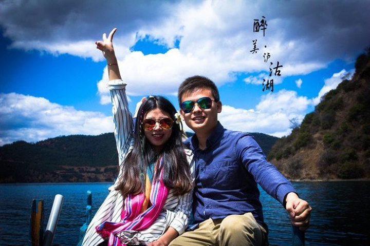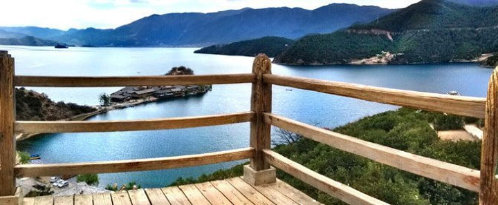 坐完船天气就开始阴了,满心欢喜的跑到里格观景台就为了拍下心形泸沽湖,到了后漫天的乌云,再加上相机和镜头的原因画幅不够广没能拍到心形泸沽湖,想哭的心都有。 最后用手机全景模式拍了一张心形的,带着遗憾走的。
