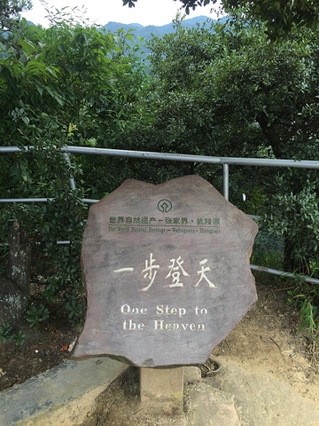 一步登天,天波府,乌龙寨都在杨家界的。玩完一路走到金鞭溪,可以买索道下,因为是往下走我们就没有买,大约要走45分钟。