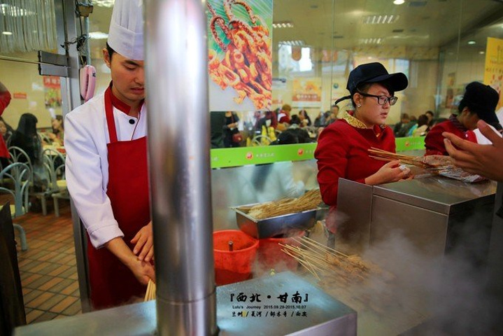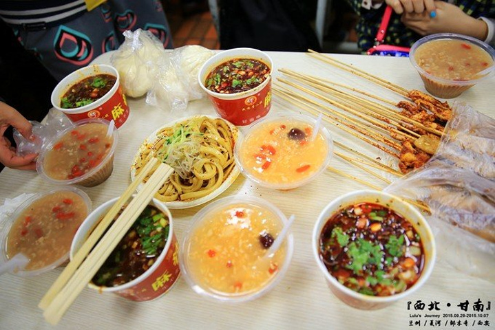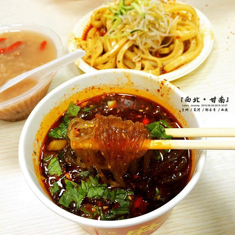 兰州的酿皮叫做高担,跟陕西米皮、面皮不同,淋上麻酱,夹起一根滋溜一声吸进嘴里,一个字,赞!