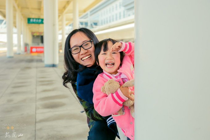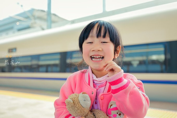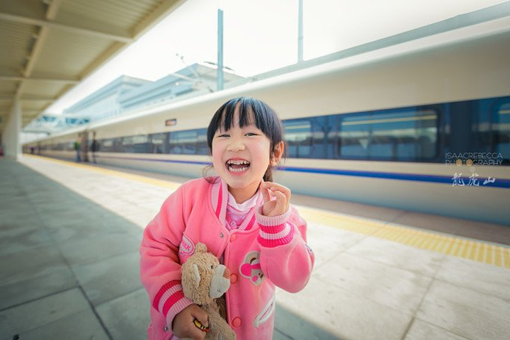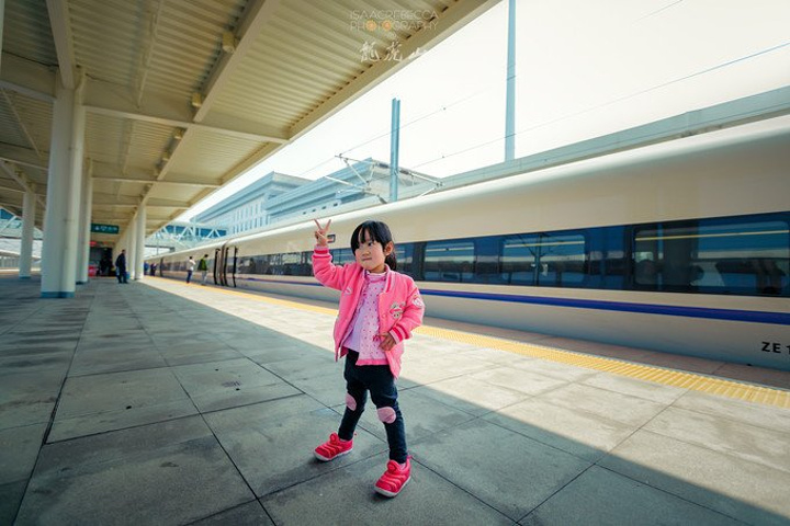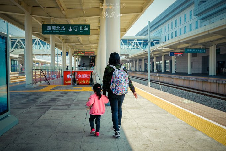 2个小时不到的车程,高铁嗖嗖地就把我们送到了鹰潭北站,下车发现,风和日丽啊,这怎么好意思呢,太奢侈了,哈哈。小太阳也开心极了,车站就开始各种pose,捉迷藏了。
