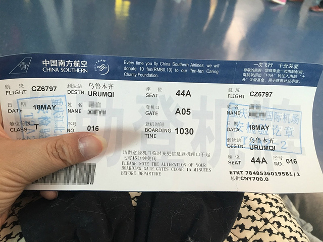 机票往返花了1385,算买得很便宜了,感觉新疆的机票常年都很贵,坐的南航还是比较可以的!他们的飞机餐虽说不好吃但是胜在不难吃,全程4个小时,建议腰不好的最好还是带个腰靠,而且坐走道边比较好,方便腰酸背痛的时候起来站一站。来自游记蓝天白云草原牛羊,一次完美的新疆吃肉之旅