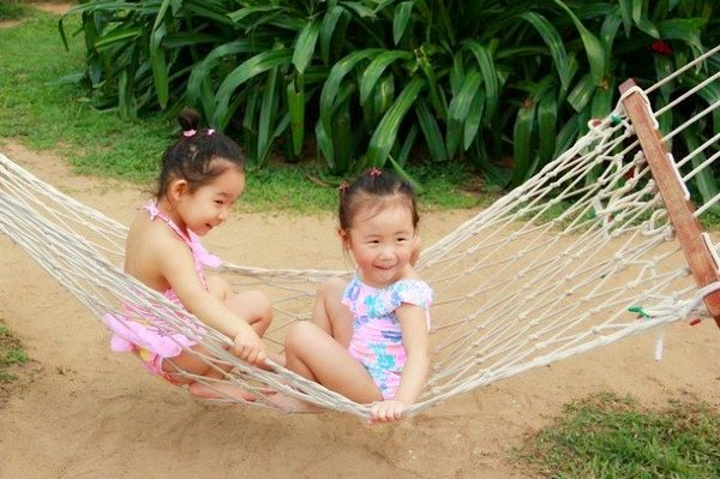 亚龙湾的沙滩很细不用担心孩子的脚丫被扎,海水很清凉干净,沙滩椅在一片树荫下整齐摆放着,在烈日下乘凉睡个午觉是个不错的选择。