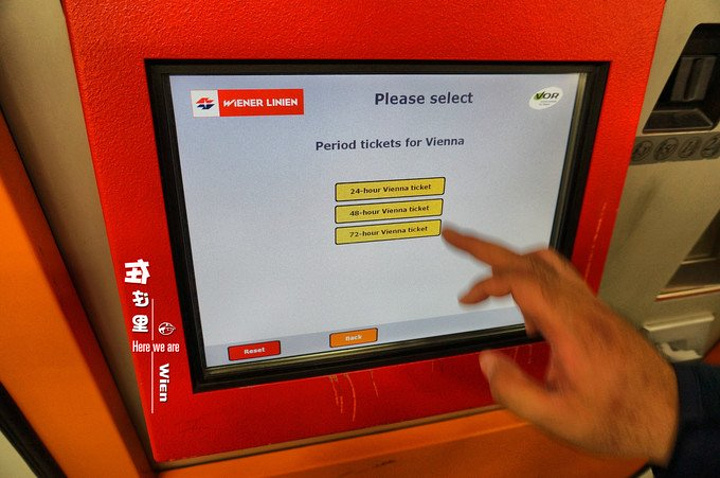 在维也纳地铁电车妥妥滴,景点差不多都可以到。在地铁进站旁都有自助售票机。交通票有24/48/72hr三种,可根据各自行程而定,一票在手,在规定时间内,所有公共交通任君去座。