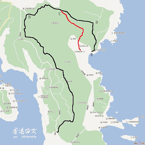 6、C、D位置都有路下大浪湾,本人推荐从D的位置下山,这条路不但好走,而且风景也漂亮,还会路过大浪湾石刻这个景点(虽然没啥好看的)。