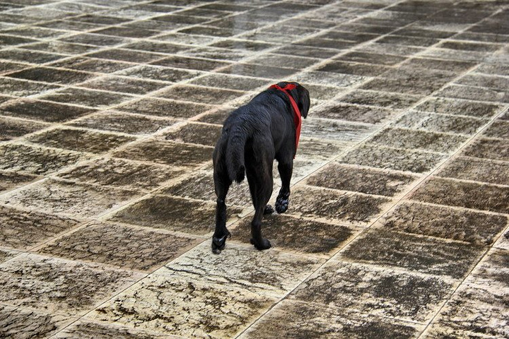 这是一种只有当地才有的狗,浑身黝黑,每只狗都系着一条红领巾。
