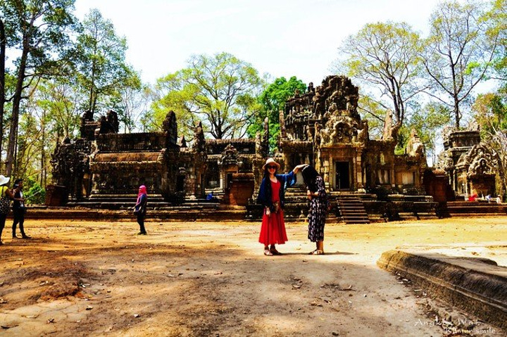 在这里 小哥帮我们拍了几张逗趣的照片 我一时没站稳也被小哥拍到了卖笛子的小男孩 有朋友会吹 也就买了一个给她当做礼物!男孩子们围绕着我们 一个劲的夸着姐姐好漂亮!缠着我们买明信片之类的小玩意来自游记柬埔寨 吴哥窟 热浪夹杂回忆包裹着我前行