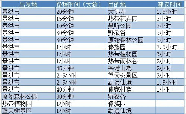 图中的路程是包车师傅提供的,由于师傅对路况较熟,所以自驾的驴友可以估算下时间,建议时间指的是景点游玩时间。