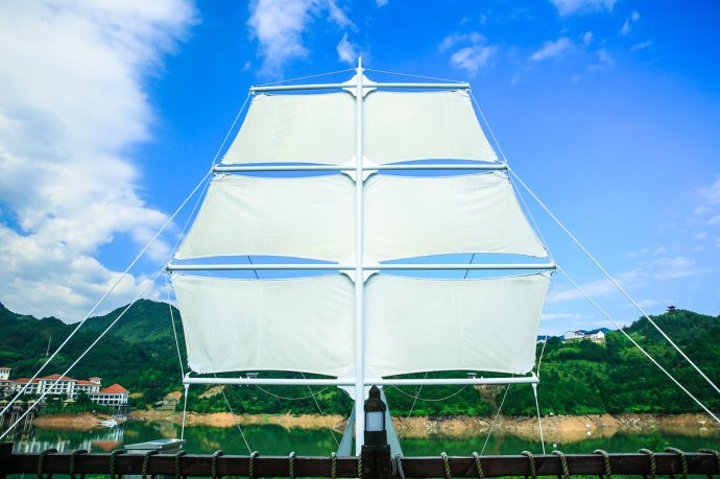 夜色撩人,行走在宋城云曼酒店的栈道上,看着远处的帆船和木屋,她的美丽我已无法表达