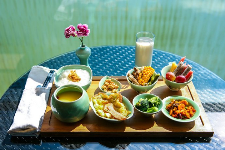 管家把早晨做好的可口早餐送到房间。足不出户就可以享用美味佳肴,这对想放松度假的人来说,真是太棒了。