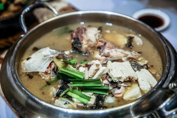 上次在千岛湖吃到鱼头,至今念念不忘,但来到这里,有幸吃到酒店大厨精心做的新鲜的鱼头锅,据介绍,采用的是湖里刚打捞的原生态大鱼,经过特别烹制后,完全没有一般湖鱼的泥土味。鱼头汤很鲜,很美味。这个味道会让我对这里更加喜欢