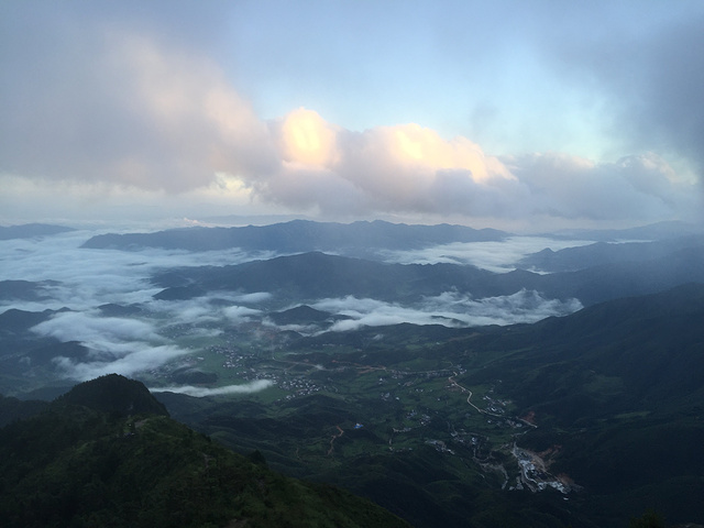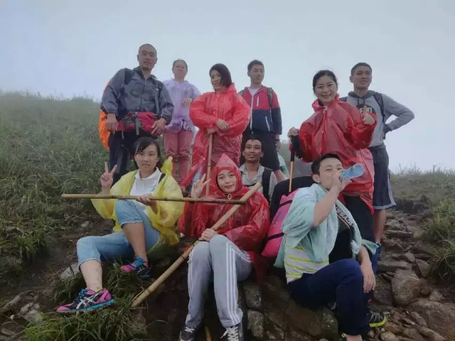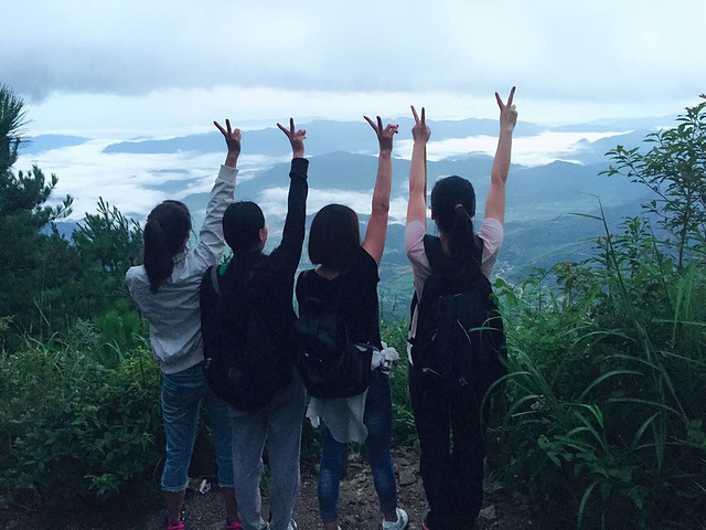 一路全是山路,上坡,爬了一个小时小伙伴有掉队的,饿的,呼吸急促的,走的腿发软的,甚至撕心裂肺哭的,都看到山上的云海和快出来的太阳,所有的累全部都消失了,开心的就是各种的自拍。