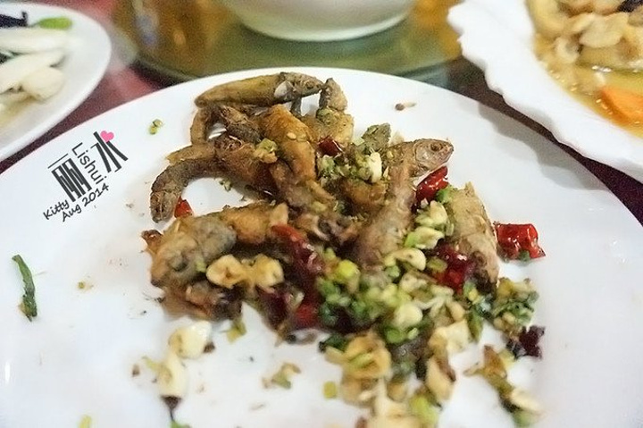 洋气旅馆旁边有餐厅,昏暗的餐厅少量的节能灯,菜的色面也看不清。惨!!!无语。晚饭还要在这里吃。101个。随拍~~~