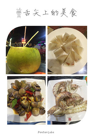 晚餐可以在亚龙湾附近的自助海鲜烧烤餐厅吃,附近也有很多大排档,百花谷购物中心旁边还有麦当劳和必胜客。