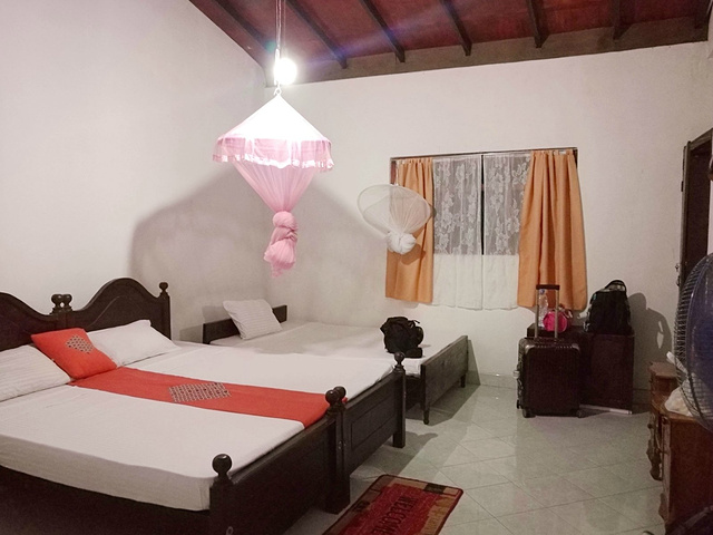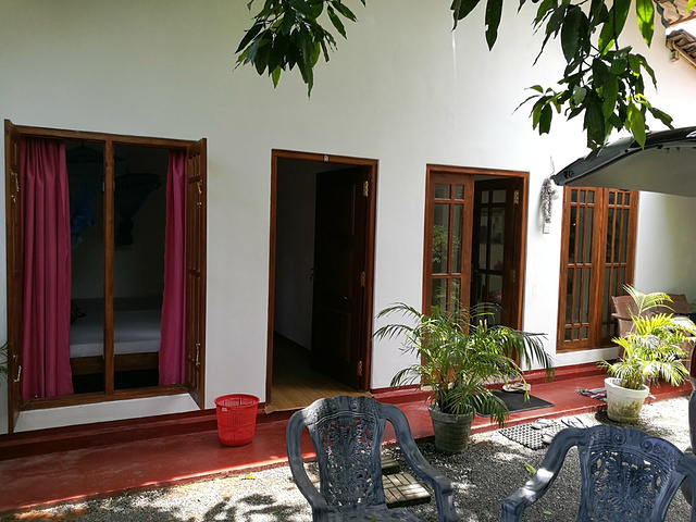 我们这次的行程都在airbnb或booking上订的民宿,为了节省费用,住的都是普通民居,除了在booking上订的努瓦勒埃利耶的房间环境差点以外,其他的大家都很满意,环境优雅,比较干净,特别是那些有大阳台和大客厅的民居,让人流连忘返。说到住宿,让我不得不说,因为我是凌晨到达斯里兰卡,第二天有一整天的自由安排时间,所以为订科伦坡还是尼甘布的住宿纠结了很久,最后还是在一名华侨房东的建议下,在booking上退了科伦坡的民宿(提醒:booking退房是不收手续费滴,airbnb上退房要收管理费),又在airbnb上定了尼甘布Paradise Villa43的民宿,因为斯里兰卡虽然是很原生态的岛国,但国内交通网络很发达,机场离尼甘布很近,入住以后,第二天大巴去科伦坡约40分钟,很方便,免去我们拖着行李折腾的烦恼。兰卡虽然不发达富裕,但每家都有进家门拖鞋的习惯,很爱清洁滴。民宿让我在旅途中有回家的感觉,也能更加了解当地的民风和民情。友情提醒,订住民宿时一定要仔细看提供的设施清单,因为斯里兰卡很多民居是不提供热水浴的,入乡随俗,但愿能适应。