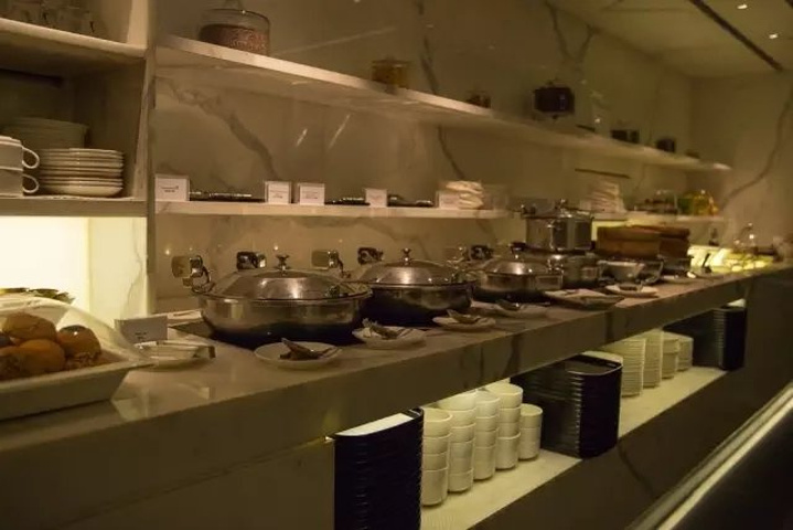 如果你要做一次远足的旅行,尤其是出国旅行,那最好是提前准备行李。这样就不会事到临头手忙脚乱甚至遗漏物品。出发的前夜我整了半晚上行李,第二天一早甚至没来得及喝一杯咖啡就匆忙赶往机场。当然这次预留的时间还是充裕的,过完安检后直奔国泰及港龙航空的休息室。早餐就在休息室解决了,吃点东西喝口水等着飞机起飞。国泰及港龙的贵宾休息室很不错,餐食和饮品都很丰盛,随手拍了几张大家感受一下。