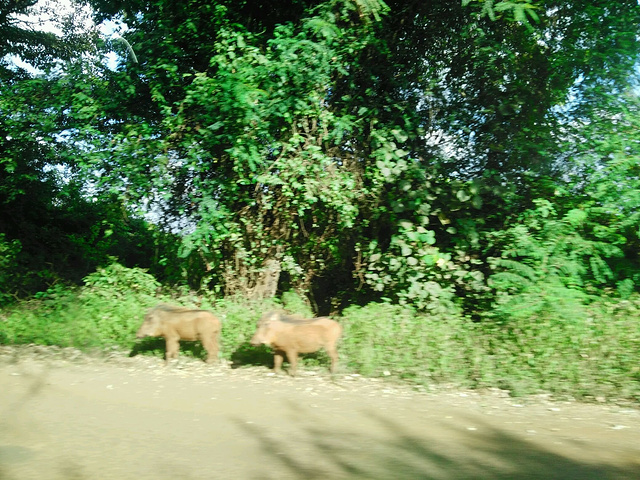 路过内罗毕国家公园时,碰到的两只迷路小疣猪。