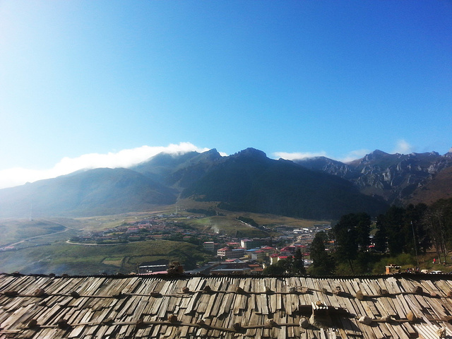 眺望郎木寺,云雾环绕半山,颇有云海之感