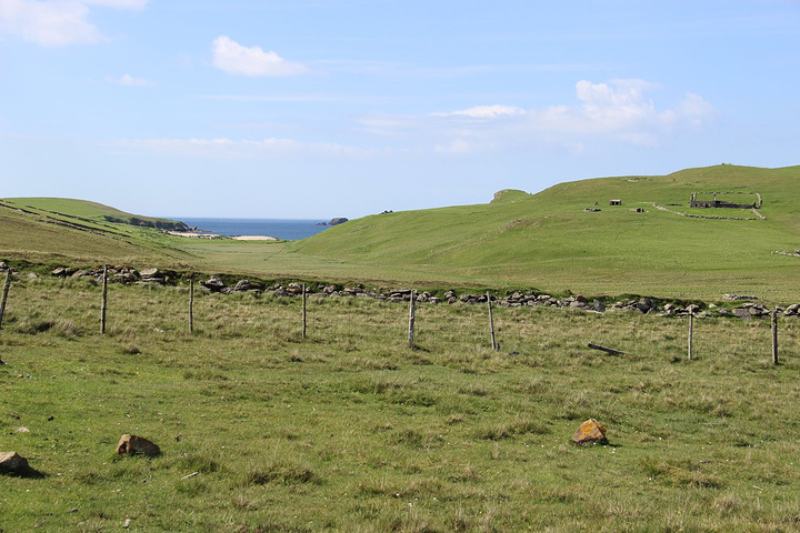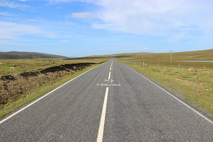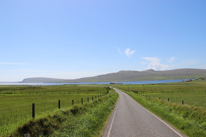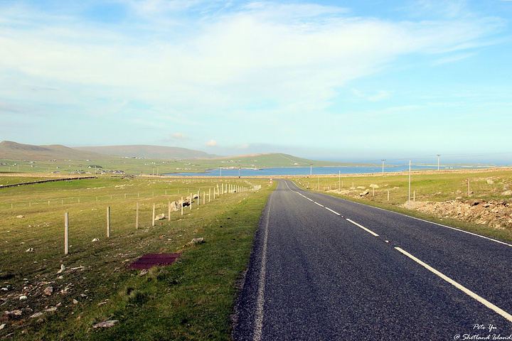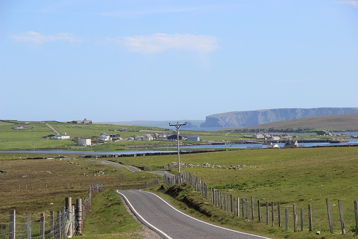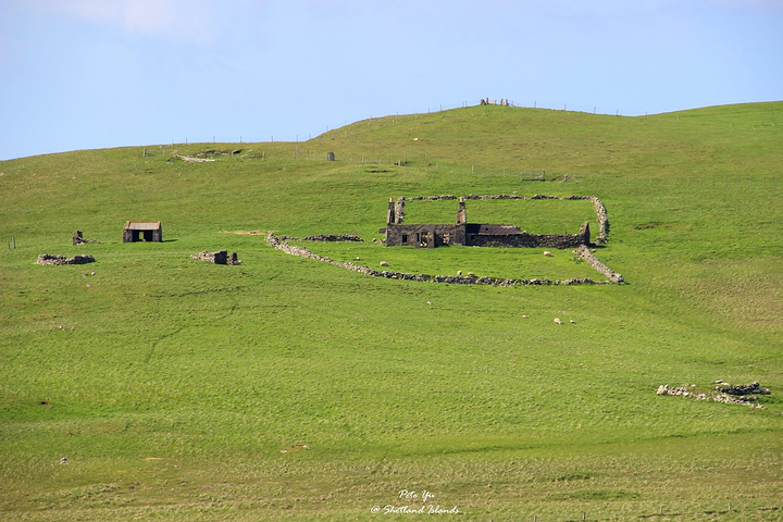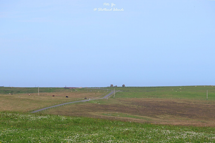 离开西海岸,原路返回到主公路,继续往南,下个路口左拐进入东南方辅路,去看另两个遗迹。路过这个小村叫Uyeasound,与对面的Uyea岛相望,有专门的小码头去往对面无人岛,主要是放牧什么的。在设得兰骑单车,很多道路都是这样,只有单车道,每几十米有个Passing Place供来往交汇车辆让车。因此一路上不断碰到被让车,都是轿车在老远看到我,然后找个附近的Passing Place停下等我过去。有次上坡我正骑不动下车推行,前面老远就看到一辆车慢慢停下来,还不断招手等我过去,我示意我比较慢让他先走,这家伙还是一个劲的地非等我过去。不得不感慨人家的这种氛围...