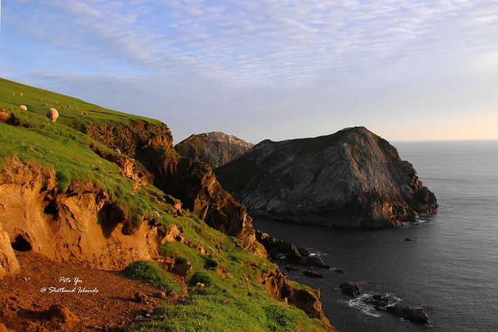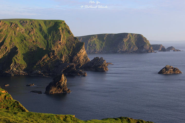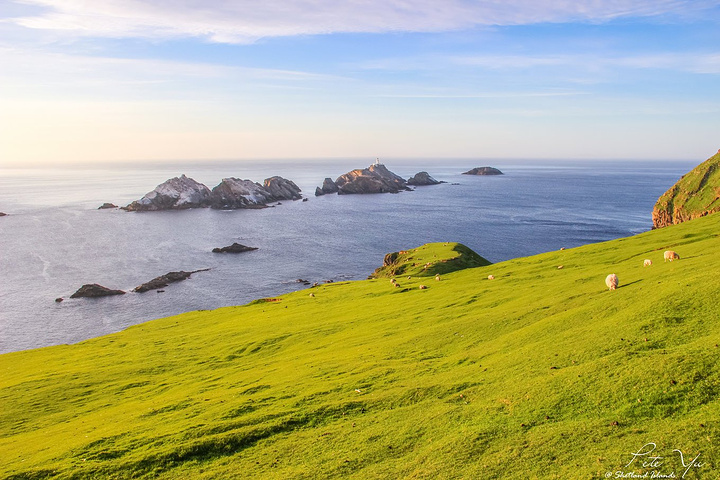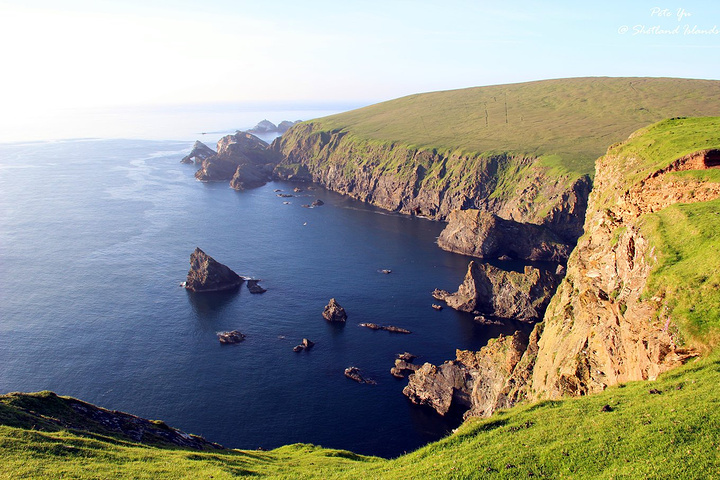 就是这里了,全英最北的陆地界,大不列颠群岛的最北的领土,就是这群被称作是马克尔弗拉加(Muckle Flugga)群岛的岛礁所组成。坐落于我所站在的断层约1英里的北大西洋海面上,其上的灯塔同样是由作家史蒂文斯的父亲所建造。如前文苏格兰之行提到的Dunnet角灯塔由其祖父建造,这个建筑世家两代建立起了英国最北和不列颠主岛最北的两座重要灯塔。而据传说,史蒂文斯小时候终日凝望这片北方尽头之地得出了灵感,才有了那部举世之作《金银岛》。本次英伦之旅的终极目标,一直以来登上英国最北之地的心愿终于达成!!!