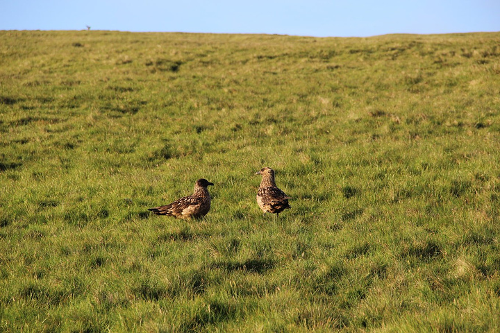 进入北极大贼鸥栖息地,虎视眈眈了... 随后就是几篇设得兰攻略看到的情形,它们起飞在我头上盘旋俯冲,要把我赶出领地,于是我参照攻略双手举过头顶挥舞,果然被我赶走啦。