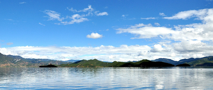 船儿晃晃水儿荡,在蓝天白云群山怀抱中,我要出航啦♪(^∇^*)