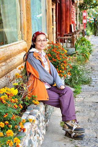 雨后,湿漉漉的石板路,静悄悄的清晨,路过昨晚的晚餐地,扎西家,留个影^_^