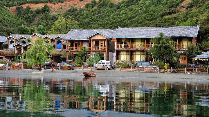感谢自然的恩赐,让我们感受了泸沽湖多云、阴天、雨天和晴天各自的美丽;也感谢司机扎实,带着我们开心又安全的环湖一周。于傍晚时分我们回到里格,趁着阳光未歇,我们乐呵呵的沿着湖边,去逛逛里格半岛。