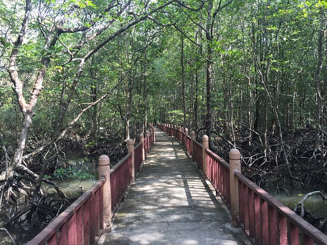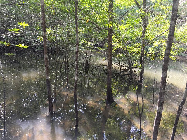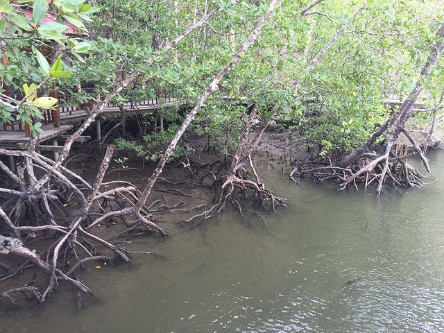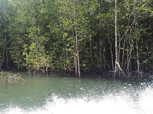 船开了一会停靠在一个岛上,上面有蝙蝠洞可以看,也有红树林的景观,上岸之前还有进入蝙蝠洞之前导游会讲很多注意事项,其实也没有什么,就是一段路而已,跟住大部队别瞎好奇就行了。
