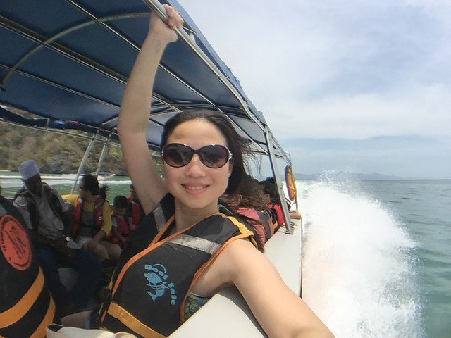 回程的路上船长把船开到了安达曼海上,而且到之前提醒我们说如果手机卡是马来西亚的,要开飞行模式,要不然进入安达曼海那边就算泰国的地盘了。然后船就加速度,驰骋在海上,我觉得一直坐着特别无聊,就转身跪坐在座位上,海风迎面袭来,当真是乘风破万里浪,颇有一种海贼王的即视感!!!