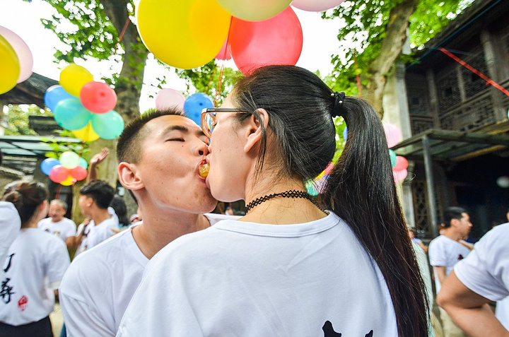 南浔古镇举办了规模较大、氛围较浓的七夕冰吻节。刚好可以趁着这个机会来此欣赏下只羡鸳鸯不羡仙的气氛了。