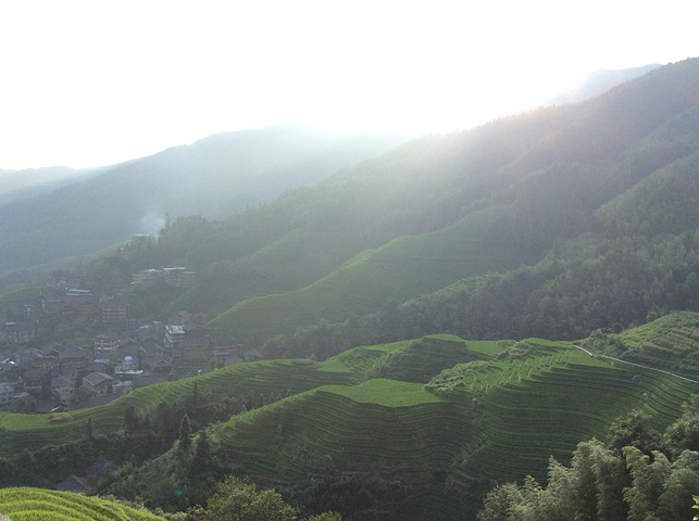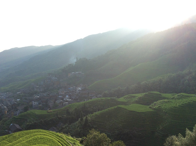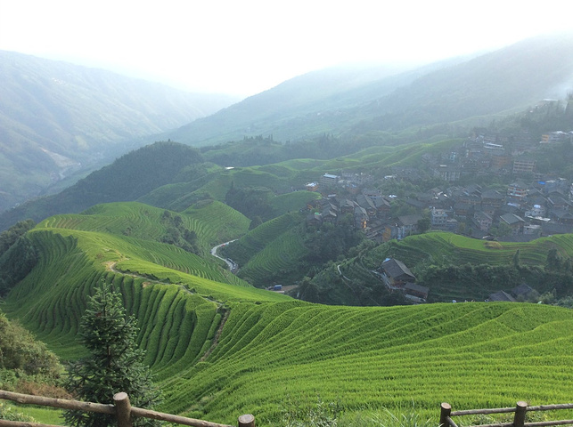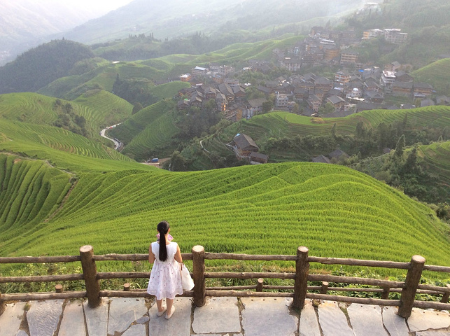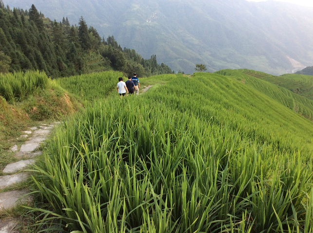 走的时候问了景区工作人员,可以从另一条路出去到葡萄,那里有加油站,可以吃饭,上高速到桂林再去龙胜。去往葡萄的路很平坦、安全,到了葡萄加油吃饭就前往龙脊梯田平安大寨,虽然路程不远,就100公里左右吧,到龙胜那里的路曲曲弯弯多,车速不快,其中有段路没开导航,来回走错了10多公里,花了3个小时多才到了平安停车场。