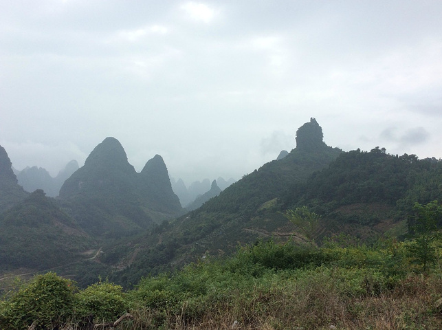 由于是盘山公路,车速并不快,就30公里左右而已,加上之前看着油量并不多,虽然一路上都看着有村落集聚,这也印证着我们所说的白云深处有人家。而妈妈和伯母胆子就比较小,有些担心,总是说为什么还没到呢,待会要是没油了怎么办,山路有点陡峭,越往上走,说是有点耳鸣。后来,我的手机没信号,导航出问题,别的手机没有高德导航。出现了内讧,爸爸不发表意见,妈妈伯母就坚持走回头路,我和大伯坚持走下去,而我之前查找过相公山的资料,那里游人不多,知名度不大,可是周遭环境漂亮,可以一览众山与漓江,网上显示的景色真的很漂亮,我不愿意因为这样的事情而放弃。