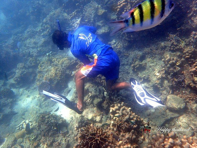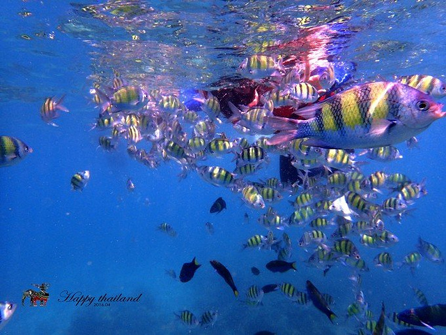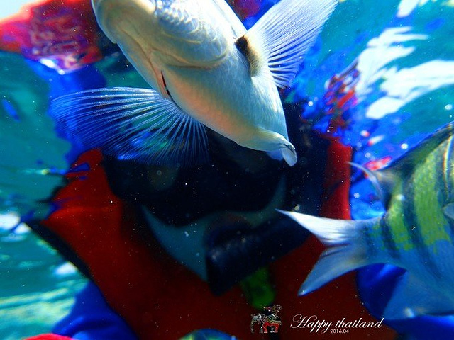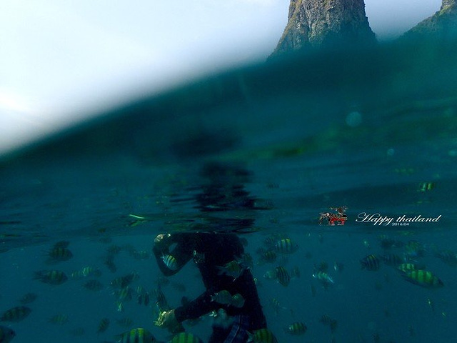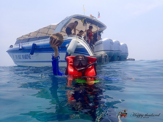 教练潜到海底捡到了一块不知道是珊瑚还是石头的东西给我,特别扎实,准备拿上岸给船上那两只没下水的宝宝瞅瞅的,被船上的水手发现立马就抢过去扔到了海里。。。讲真,泰国人的保护意识还真是蛮强的。